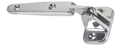 Messing Luken-Scharnier Art. 82 für stabile und langlebige Befestigungen im maritimen Bereich. Hochwertig verchromtes Messing mit 40 mm Kröpfung für zuverlässige Funktion. Abmessung 135x58 mm, ideal für Luken, Klappen und Abdeckungen an Bord.
