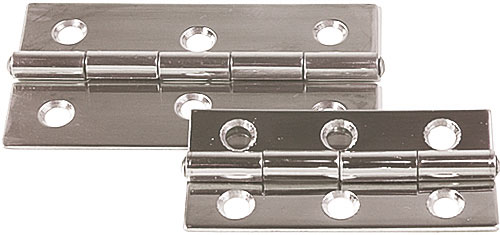 Flaches Niro-Scharnier aus rostfreiem Edelstahl für langlebige und stabile Verbindungen an Bord. Erhältlich in 60x30 oder 75x41 mm mit je drei Bohrungen pro Seite für eine sichere Verschraubung. Die Materialstärke von 1,5 mm sorgt für hohe Stabilität bei Klappen, Deckeln und Staufächern.
