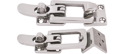 Robuster Hebelverschluss für Luken, Klappen und Staufächer an Bord. Der Spannverschluss sorgt für sicheren Halt durch gleichmäßige Zugkraft und lässt sich schnell öffnen und schließen. Erhältlich mit gerader Gegenplatte für flache Flächen oder gewinkelter 90° Gegenplatte.
