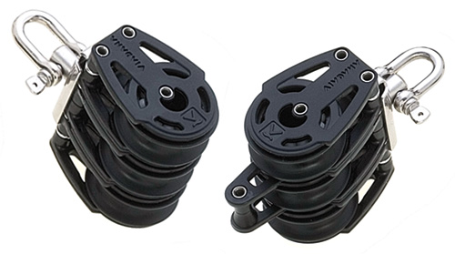 Composite Block dreifach von Viadana mit robustem Composite-Gehäuse und Edelstahl-Lastgehäuse für hohe Belastungen an Bord. Kunststoff-Kugellagerrollen sorgen für reibungsarmen Lauf. Ideal für Fallen, Schoten und Trimmarbeiten im Segelsport. Verschiedene Ausführungen verfügbar.