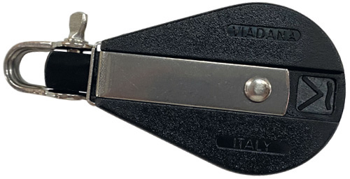 Robuster Drahtseilblock von Viadana mit stabilem Kunststoffgehäuse und leichtgängiger Aluminiumrolle. Wahlweise mit fixierbarem oder drehbarem Kopf für flexible Anwendungen an Bord. In verschiedenen Rollendurchmessern erhältlich – ideal für Segel- und Trimmarbeiten.