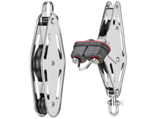Hochwertiger Edelstahl Violinblock von HS Sprenger für den Einsatz an Bord. Rostfreies Gehäuse mit Hostaform-C Rollen, Gleitlager sowie Bolzen und Ringsplint für einfache Montage. Mit integrierter Schotklemme Typ HT 13 – ideal für präzise und zuverlässige Schotführung.