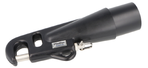 Robuster Spibaumbeschlag aus geschmiedetem Aluminium, schwarz eloxiert für optimalen Korrosionsschutz im maritimen Einsatz. Ideal für Spinnaker- und Spi-Ausrüstung auf Segelbooten. Langlebig, widerstandsfähig und präzise verarbeitet für zuverlässige Performance an Bord.
