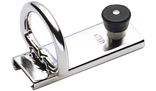 Robuster Spibaum-Schlitten (20 x 3 mm) für die Genuaschiene. Mit integriertem Stopper und stabilem Auge zur sicheren Befestigung des Spibaums. Gefertigt aus rostfreiem Edelstahl für hohe Belastbarkeit und langlebigen Einsatz an Bord – ideal für Segeltrimm und präzise Führung.