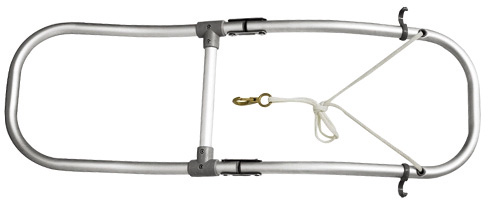 Klappbare Badeleiter für Schlauchboote aus leichtem, robustem Aluminium. Dreistufige Konstruktion mit komfortabler 30 cm Trittbreite für sicheres Ein- und Aussteigen im Wasser. Inklusive Sicherungsleine und Karabiner für eine stabile Befestigung am Spiegel.