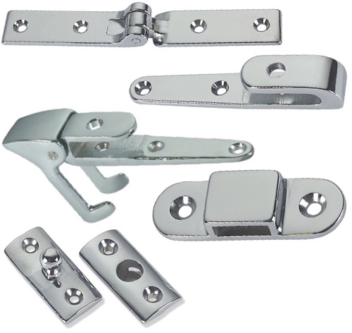 Robuste Beschläge für Badeleitern aus hochwertigem, verchromtem Messing. Die stabile Ausführung sorgt für zuverlässigen Halt und lange Lebensdauer im Marineeinsatz. Scharnier-Aufhängung mit Sicherung, Lasche und Schnapper für eine sichere und stabile Befestigung der Badeleiter.