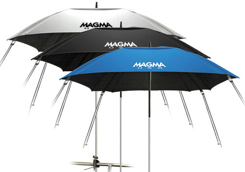 Formstabiler Sonnenschirm für die Reling von Magma. Der integrierte Innenring aus Stoff sorgt für hohe Stabilität auch bei Wind. Gefertigt aus UV-beständigem, acrylverstärktem Material. Schnelle Montage dank justierbarer Relingshalterung für Rohre mit Ø 25 mm.