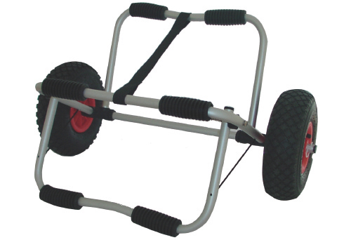 Leichter, zerlegbarer Transportwagen für Kanus, Kajaks und Faltboote. Das robuste Aluminiumgestell sorgt für geringes Gewicht und hohe Stabilität. Große Gummi-Luftreifen ermöglichen einen einfachen Transport über Strand, Slipanlage oder Hafenbereich – ideal für Wassersport und Törns.