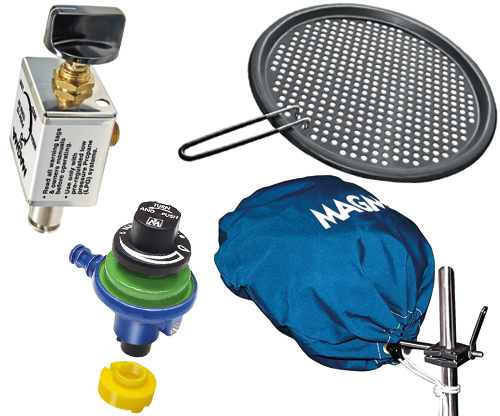 Hochwertiges Relingsgrill-Zubehör für MAGMA Marinegrills – ideal für den Einsatz an Bord und im Hafen. Mit Fisch-/Gemüsegrillaufsatz, robuster Stoffabdeckung sowie passenden LPG-Regelventilen (Typ 2 & EU Typ 3) für sicheres und komfortables Grillen auf See.