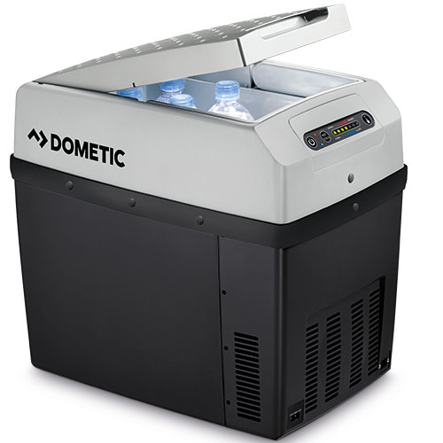 Thermoelektrische Kühlbox für Törn, Caravan und Outdoor-Einsatz. Kühlt bis 30 °C unter Umgebungstemperatur oder hält Speisen bis +65 °C warm. Mit 7-stufigem Thermostat, Energiesparschaltung, 12/24/230 V Anschluss und 21 l Volumen – ideal für Bordküche und Reise.