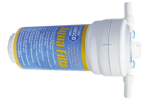 Kompakter Aqua Aktivkohlefilter von Jabsco zur effektiven Wasseraufbereitung an Bord. Reduziert Gerüche und Geschmacksstoffe zuverlässig. Mit 14 L/min Durchfluss und 4,3 bar Betriebsdruck ideal für Frischwassersysteme im maritimen Einsatz.