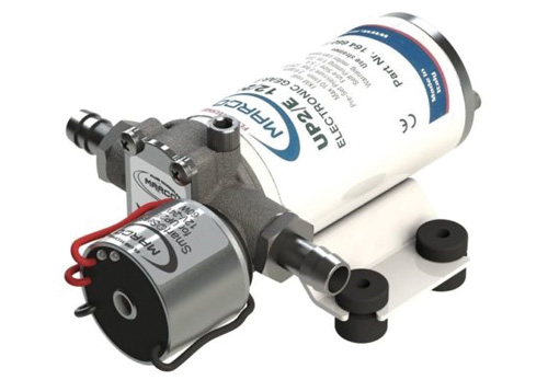 Kompakte, selbstansaugende Elektropumpe mit elektronischer Kontrollfunktion für zuverlässige Wasserversorgung an Bord und im Camper. Mit PTFE-Schrägzahnrädern, 12/24 V Universalspannung, 1,5 bar Druck und vernickeltem Messinggehäuse.
