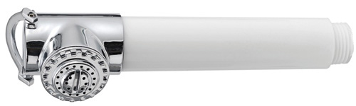 Verchromter Duschkopf mit praktischem Drucktaster für komfortables Duschen an Bord oder im Caravan. Leichtes Kunststoffgehäuse in Weiß mit hochwertig verchromtem Kopf. Ideal für Nasszelle, Pantry oder Außendusche im maritimen Einsatz.