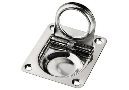 Robuster Lukenheber aus hochwertigem Niro-Edelstahl für den maritimen Einsatz. Die integrierte Feder hält die Ringklappe (Ø 26 mm) sicher geschlossen und sorgt für zuverlässige Funktion an Bord. Mit 4 mm Montagebohrungen für Senkkopfschrauben – langlebig, korrosionsbeständig und seewasserfest.