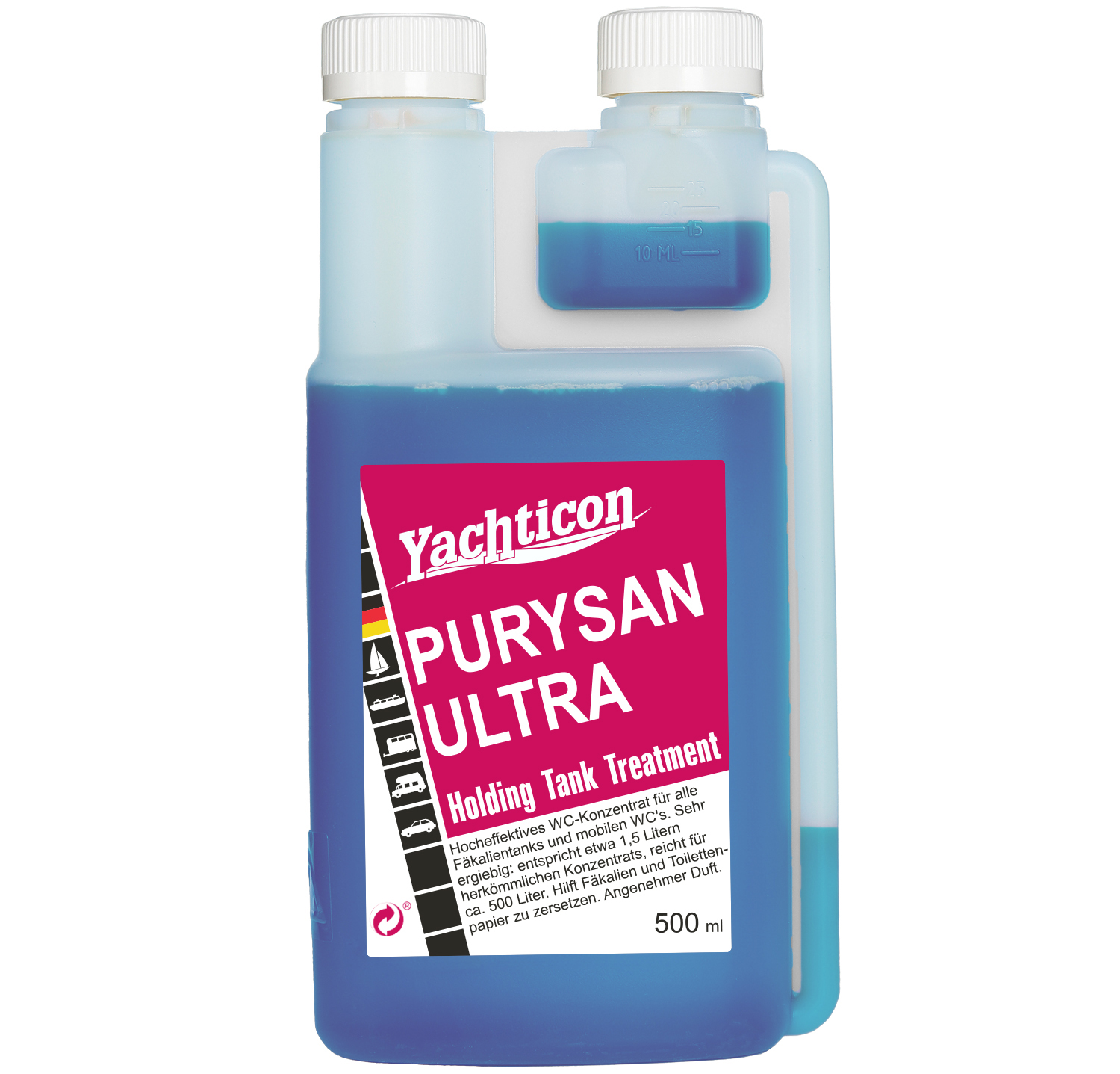 Hocheffektives WC-Konzentrat für Fäkalientanks und Camping-Toiletten im Marine- und Freizeitbereich. Desinfizierend, geruchsneutralisierend und formaldehydfrei. Unterstützt die Zersetzung von Fäkalien und Papier. Sehr ergiebig – reicht für bis zu 500 Liter Tankinhalt.