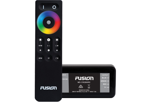 LED-Fernbedienung zur komfortablen Steuerung der CRGBW- und RGB-Beleuchtung von Fusion Lautsprechern und Subwoofern. Intuitives Farbauswahlrad, moderne Touch-Funktionen und einfache Bedienung ermöglichen beeindruckende Lichteffekte für stimmungsvolle Beleuchtung an Bord und im maritimen Umfeld.