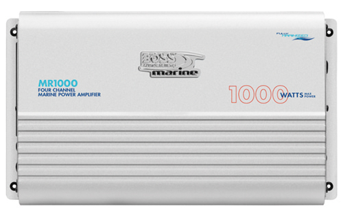 Leistungsstarke 4-Kanal-Marine-Endstufe MR1000 mit abgedichtetem Gehäuse und feuchtigkeitsresistenten Steckkontakten. 4 x 100 Watt RMS bei 4 Ohm, brückbar auf 2 x 500 Watt. MOSFET-Technologie, geringer Klirrfaktor und kabelgebundene Bass-Fernbedienung für satten Sound an Bord.
