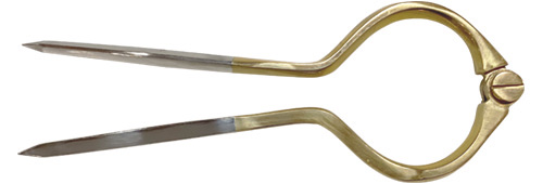 Hochwertiger Einhandzirkel in englischer Form für präzise Navigations- und Kartenarbeiten. Einhändig bedienbar für komfortables Handling an Bord oder am Kartentisch. Aus poliertem Messing gefertigt mit geschliffenen Spitzen für exakte Markierungen.