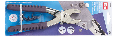 Robuste Druckknopfzange von Prym zum präzisen Einpressen von Druckknöpfen, Ösen und zum Stanzen von Löchern in Planen, Persenning, Segeltuch oder Textilien. Verchromte Messingkonstruktion sorgt für hohe Stabilität und lange Lebensdauer – ideal für Reparaturen an Bord und im Wassersport.