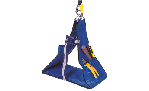 Robuster Bootsmannstuhl Typ L für sicheres und komfortables Arbeiten an Bord. Hergestellt aus langlebigem PVC-beschichtetem Nylon 210D, ausgestattet mit Sicherheitsgurt, praktischen Seitentaschen für Werkzeug und stabilem Holzbrett für bequemes Sitzen im Mast.
