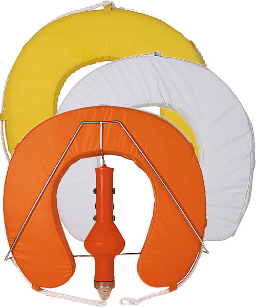 Hufeisenrettungsring für den Einsatz an Bord und im Wassersport. Weiche Ausführung aus geschlossenzelligem Schaumstoff mit robuster PVC-Ummantelung. Umlaufende Rettungsleine mit Nylon-Karabinerhaken für schnelle Hilfe im Notfall.