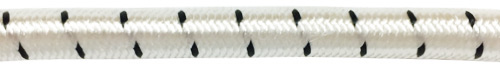 Robuste Gummischnur mit strapazierfähiger Polyester-Ummantelung für vielseitige Anwendungen an Bord und im Wassersport. Weiß mit schwarzem Kennfaden, elastisch, formstabil und langlebig – ideal zum Fixieren, Sichern und Spannen von Ausrüstung an Deck.