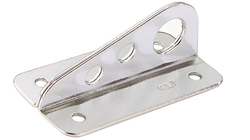 Robuster Vorstagbeschlag HS aus hochwertigem Niroblech zur sicheren Befestigung des Vorstags am Bug von Segelbooten. Drei stabile Anschlagpunkte für Vorstag und Strecker sorgen für maximale Stabilität des Riggs und zuverlässige Kraftaufnahme. Montagebild 55 x 22 mm.