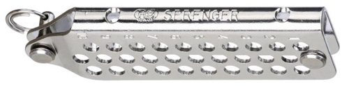 Robuster Wantenversteller aus Edelstahl in starker Ausführung für Jollen und kleine Segelboote. Drei versetzt angeordnete Lochreihen ermöglichen eine präzise Justierung von Mastneigung und Wantenspannung – ideal für optimalen Segeltrimm und sichere Takelage bei wechselnden Bedingungen.